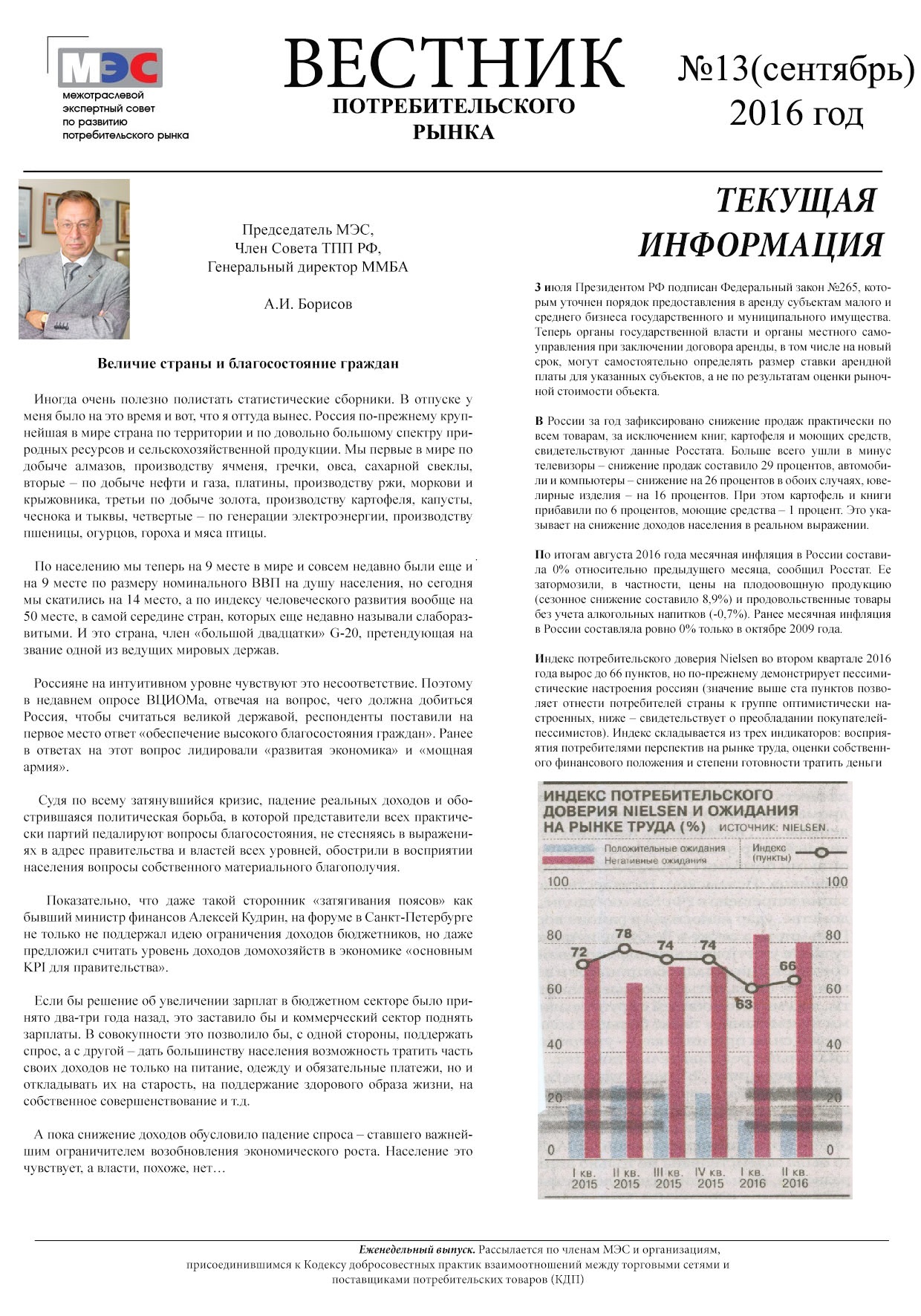 В интересах повышения информированности участников потребительского рынка о деятельности МЭС продолжается рассылка по всем членам и партнерам Совета еженедельного информационного бюллетеня «Вестник МЭС».