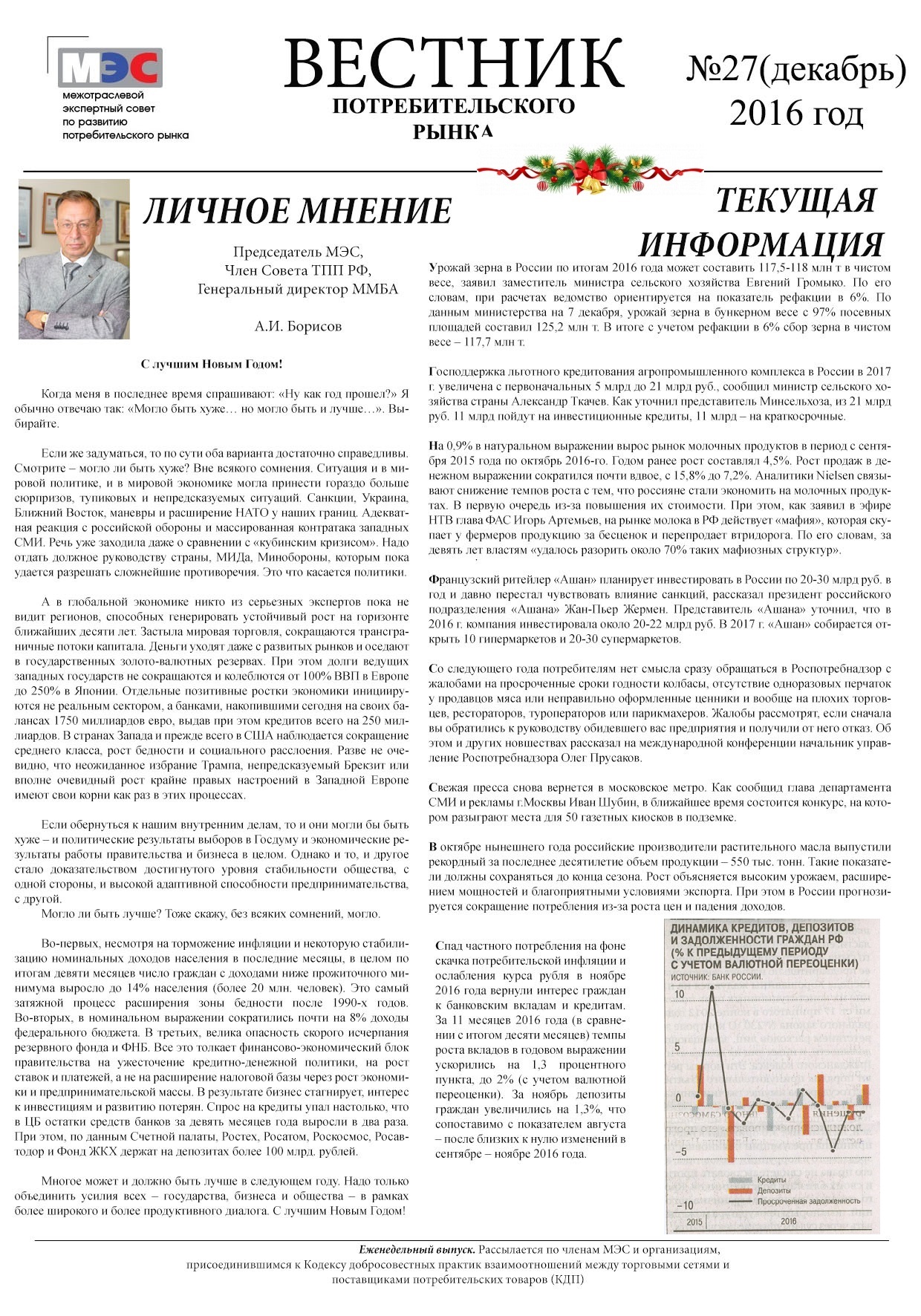 Вашему вниманию предлагается Выпуск №27 (декабрь, 2016).